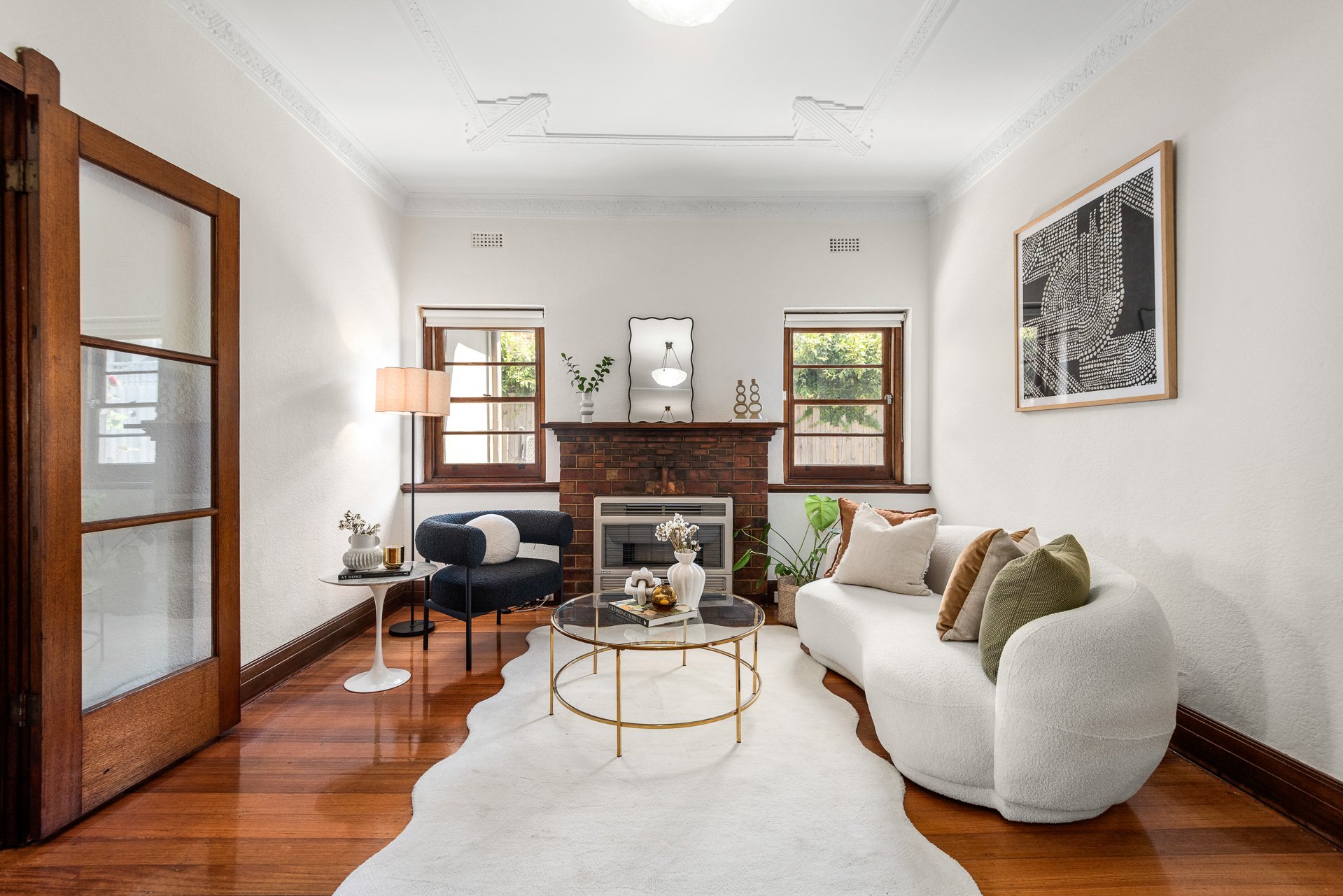 Discover the warmth, space and charm of this 2-3 bedroom double fronted Art Deco one of a pair on 450 sqm approx. A classic palette of hardwood floors, high ornate ceilings, deep timber sills and vintage cabinetry, there’s exciting times ahead for a reimagining with its 5 principal rooms, deep east facing rear garden and wide side driveway. • Northern aspect to most rooms • Wide entry foyer with classic storage • Elegant lounge/3rd bedroom with fireplace • North facing living and dining room with gas heater • Cheery kitchen/meals • 2 big bedrooms, study/vestibule • Updated bathroom with original bath • Separate laundry and toilet • Concrete patio in level rear garden • Tandem undercover parking Whisper quiet, this Art Deco treasure is moments to Bay Street’s vibrant café, restaurant and wine bar scene, the Palace Cinemas, Coles supermarket essentials, North Brighton station, Brighton Primary School, Firbank and Brighton Grammar, and only minutes to the beach, jump over the highway to the gorgeous Landcox Park.