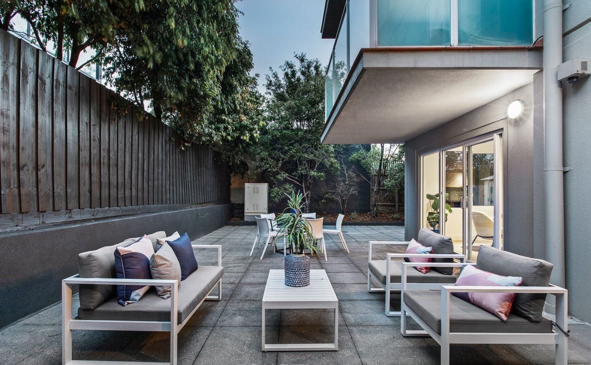 Directly opposite St Kilda beach, a rare opportunity to reside in a prized beachside ground floor apartment with a spacious wraparound courtyard. Located at the rear of the prestigious Waterfront building this two-bedroom apartment offers the ultimate in relaxed living, with a huge outdoor entertaining area, just a short stroll to St Kilda’s premier lifestyle precinct. Well-appointed in the Waterfront group’s innate style, this expansive apartment, features natural stone benchtops, European appliances, plush carpet, separate laundry, reverse-cycle air-conditioner and additional panel heating. The generous living-dining area flows onto the substantial paved, wraparound garden, while the two bedrooms, both with mirrored robes, are oriented to the leafiest aspect of the garden. Boasting two-car secure basement parking, take the stairs or lift to your door. Meanwhile, invite your visitors to enter the secure building via video intercom through the impressive lobby. Every St. Kilda attraction is at your doorstep. The choice is yours, relax in your own garden oasis, head to the beach or marina, or choose fine sunset dining at Donovans, cocktails at the Stokehouse or enjoy Acland Street cakes and restaurants, the vibrant Esplanade markets, Luna Park, Palais Theatre, Peanut Farm Reserve and dog park, St Kilda Botanical Gardens, and so much more. Foreshore bike and walking paths and nearby trams offer an effortless commute to the CBD. INSPECT AT ADVERTIZED TIMES